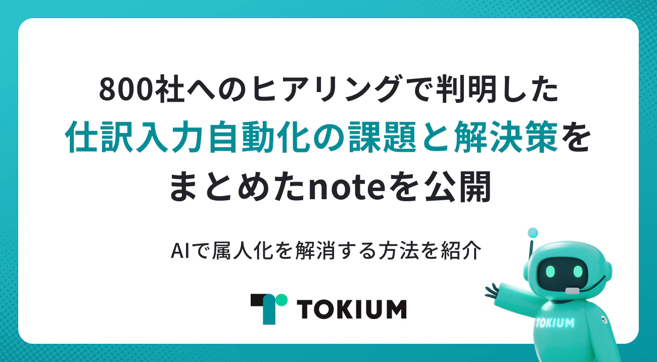 経理AIエージェントを提供する株式会社TOKIUM(本社:東京都中央区、代表取締役:黒﨑 賢一、以下「TOKIUM」)は、TOKIUM AI明細入力プロダクトマーケティングマネージャーの北島によるnote記事を公開しました。