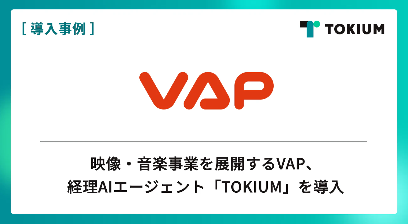 経理AIエージェントを提供する株式会社TOKIUM(本社:東京都中央区、代表取締役:黒﨑賢一、以下「TOKIUM」)は、株式会社バップ(本社:東京都千代田区、代表取締役社長執行役員:山川洋平、以下「VAP」)がTOKIUM AI経費承認機能を導入したことをお知らせします。