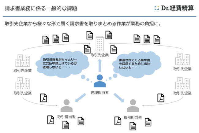 昨今のコロナ禍でテレワークが要請される中、紙やメールでバラバラと会社に届いてしまう「請求書」。お客様の声を聞く中で、「請求書」に係る業務負担は経費精算以上であることが分かってきました。