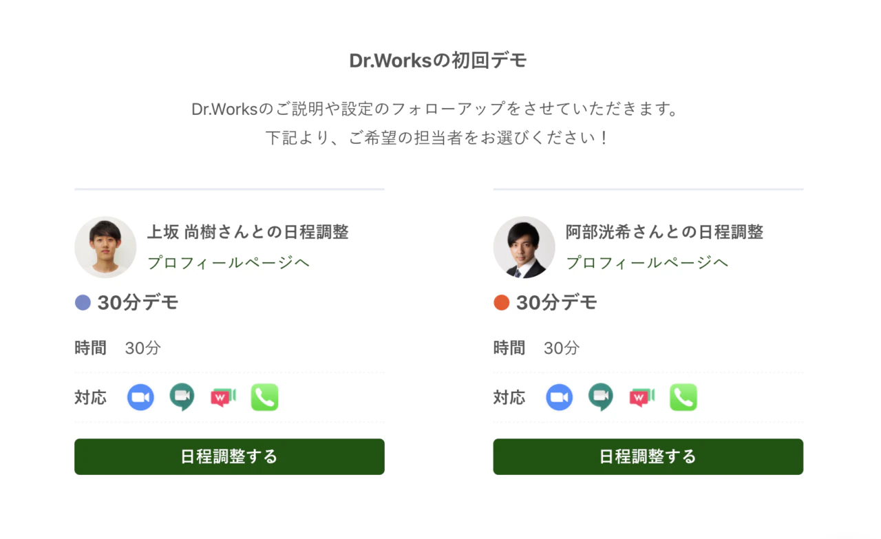 - 日本初のWeb会議に特化した日程調整・営業支援ツール「Dr.Works」https://dr.works/