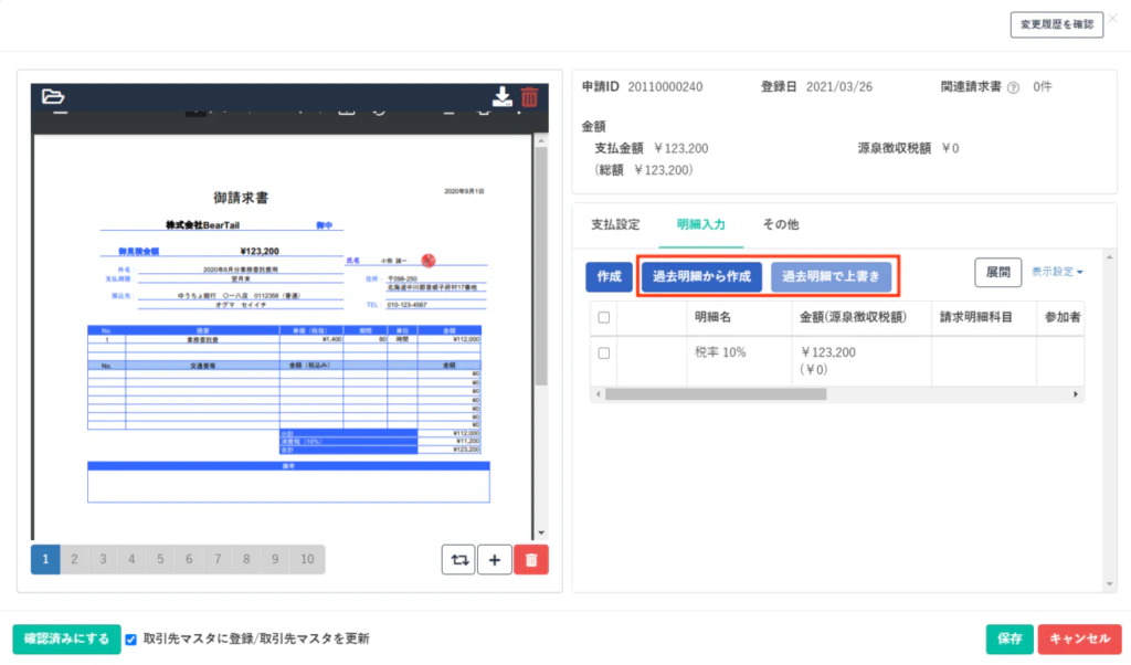 本機能では、INVOICE POSTに取り込んだ請求書データを編集・追加する際に、過去に作成した明細が引用可能になり、毎回の定例作業の削減が見込めます。