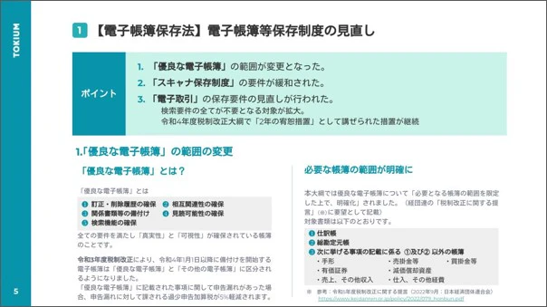 1. 「優良な電子帳簿」の範囲が変更となった。