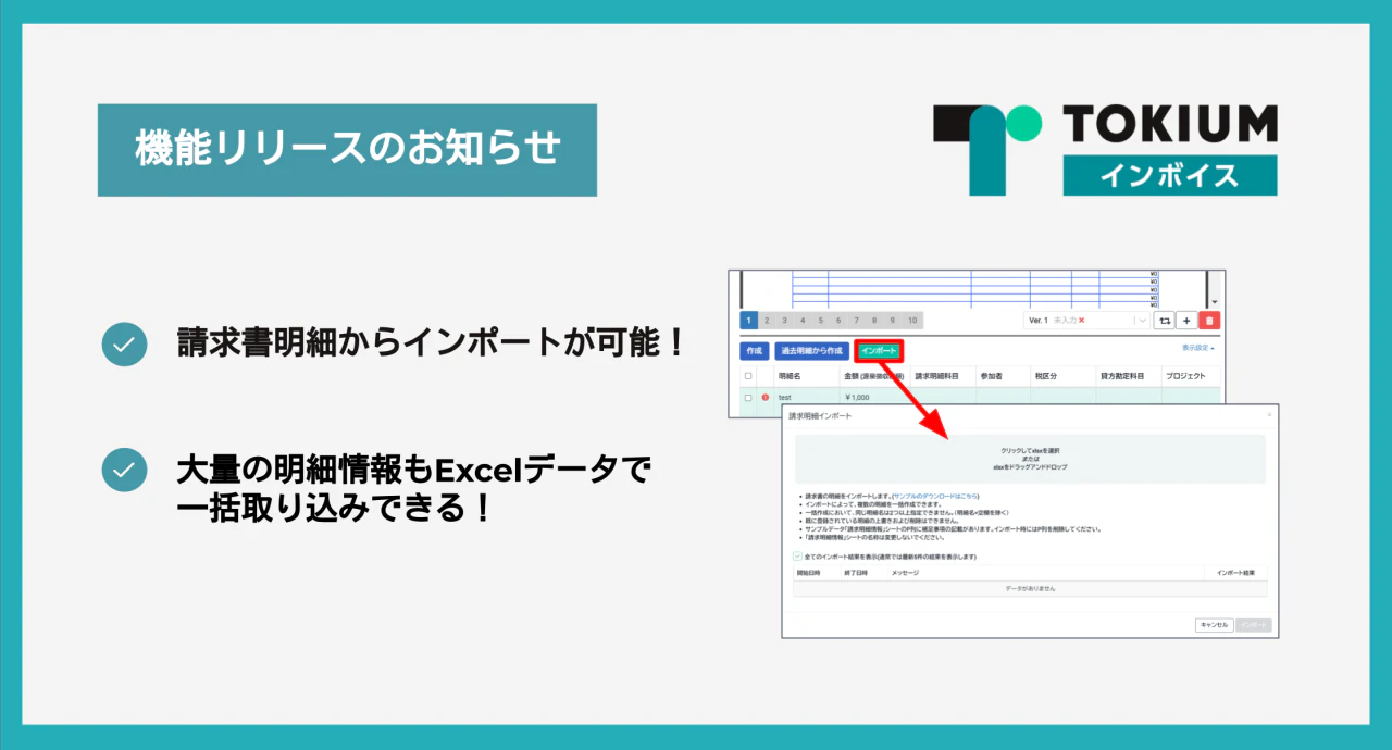 Excelファイルのインポートによる明細の一括作成が可能となりました。