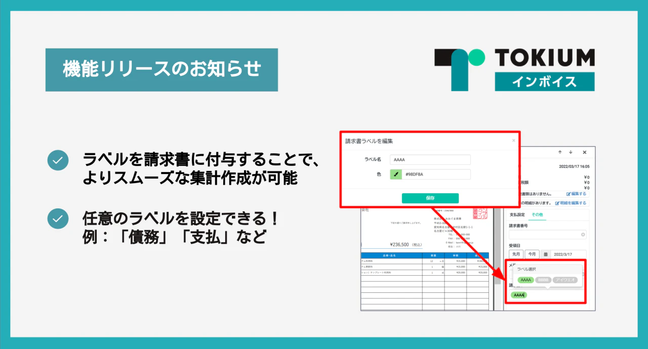 請求書ごとにラベルを付与し、集計一覧から付与したラベルごとの検索ができるようになりました。