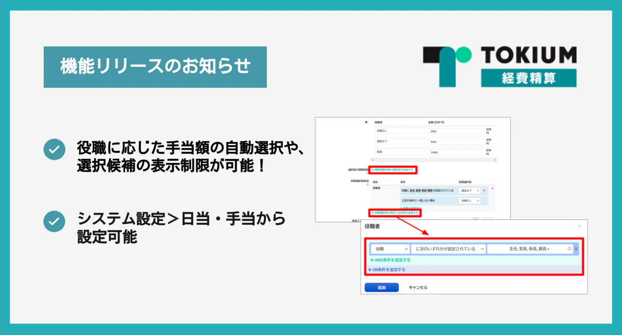 ・選択肢の表示制限:日当入力画面の選択肢の表示を制限