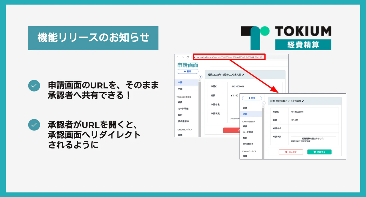 申請者が共有した申請詳細画面のURLを承認者が開くと、自動的に承認者用の画面へ遷移するようになりました。
