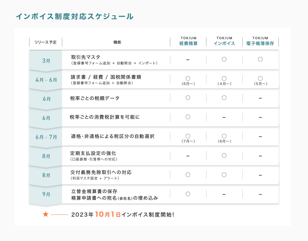 TOKIUMは、インボイス制度に対応した機能を順次リリースしてまいります。