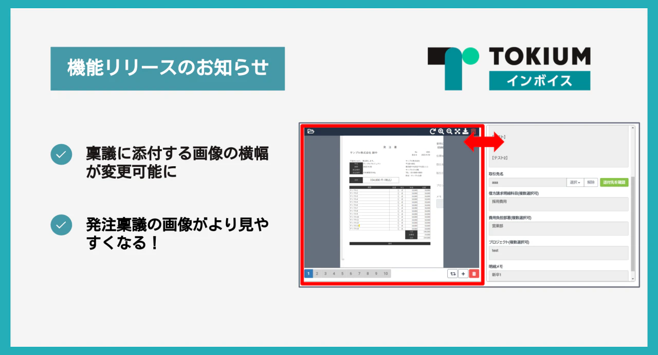 発注稟議の作成画面、および詳細画面における画像ウィンドウの横幅は固定されていました。
