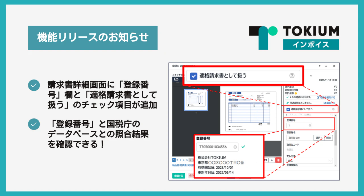 登録番号が入力され、登録状況が有効だった場合に自動でチェックが入ります。