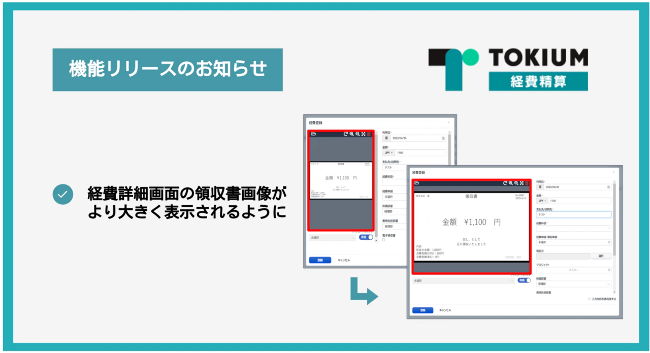 領収書画像の表示領域が拡大し、内容を確認しやすくなります。
