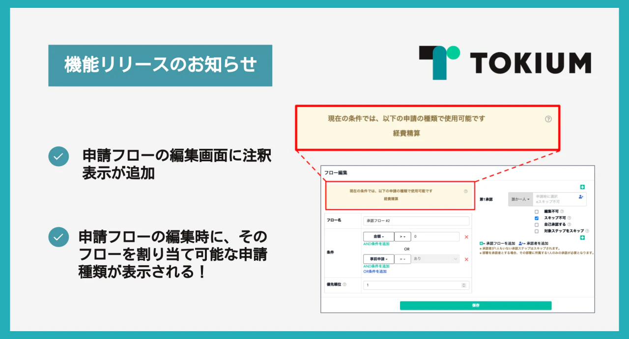 これにより、申請フローの作成や編集がスムーズに行えるようになります。