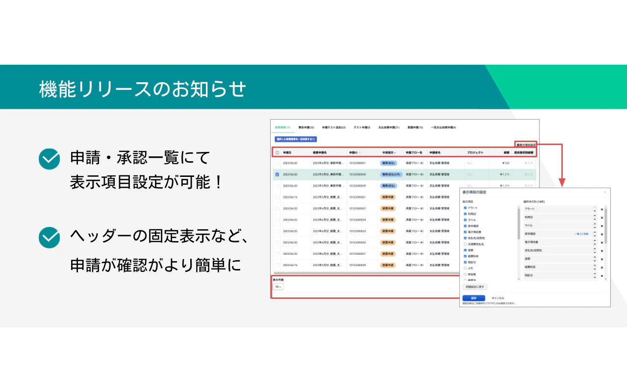 申請・承認一覧に表示する項目を、自由に設定できるようになりました。