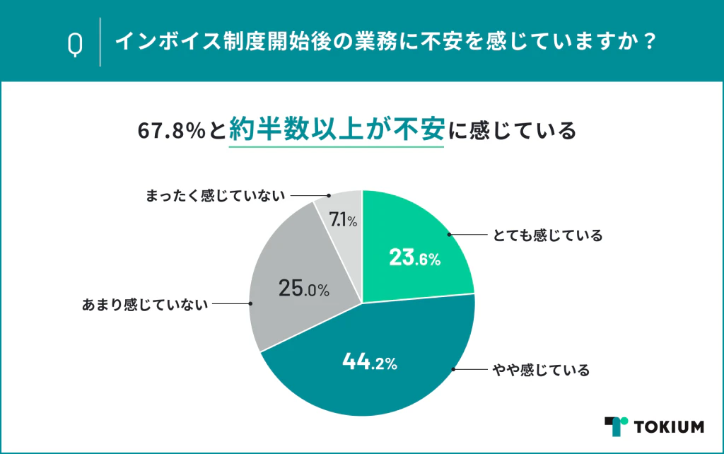 経理DXを推進する株式会社TOKIUM(本社:東京都中央区、代表取締役:黒﨑 賢一、以下「TOKIUM」)は、全国の経理業務に携わる1008名を対象に、インボイス制度に関する調査を行いました。調査の結果、インボイス制度開始まで残り1か月にも関わらず、多くの企業がインボイス制度開始後の業務に不安を感じていることが分かりました。また、一部の企業は具体的な対応策をまだ策定していないことが明らかになりました。