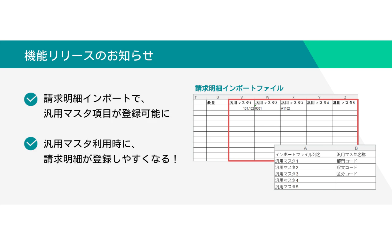 請求明細のインポートで「汎用マスタ」項目を登録できるようになります。