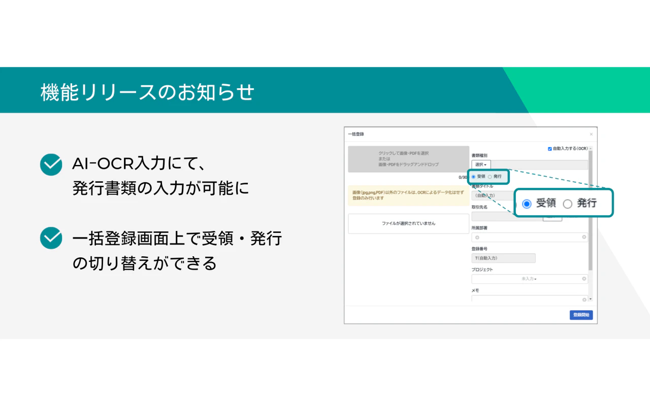 お客様から発行する書類についても「取引先名」のOCR入力が可能となりました。