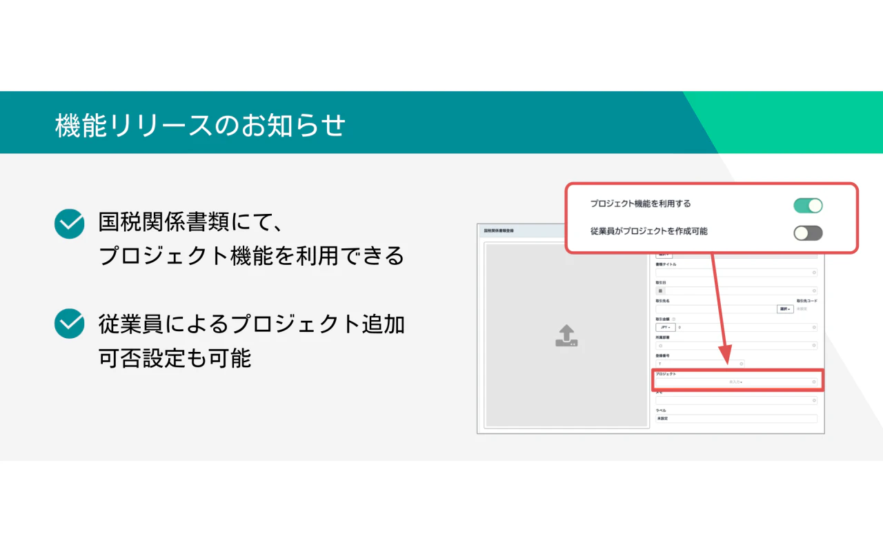 国税関係書類データでもプロジェクト機能を利用可能になります。
