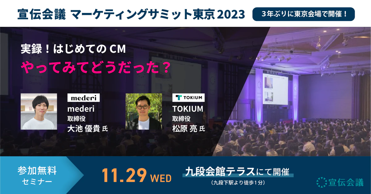 本セッションでは、「はじめてのCM、やってみてどうだった?」をテーマに、TOKIUMの取締役の松原が、mederi株式会社 取締役 大池優貴氏と対談します。