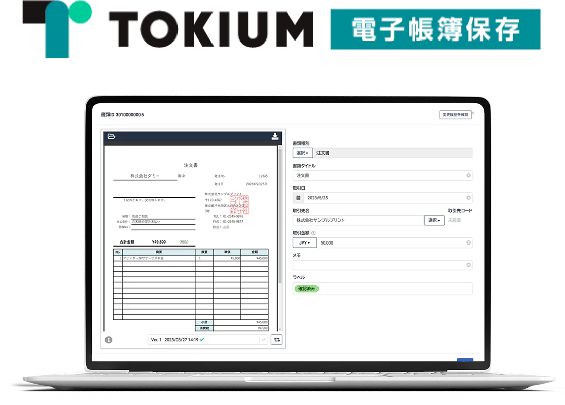 ●文書管理クラウド【TOKIUM電子帳簿保存】