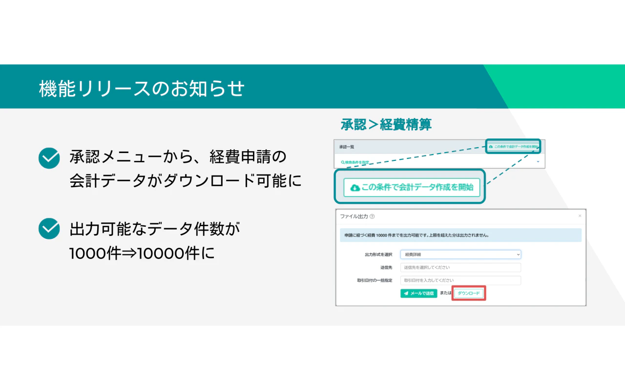 本アップデートに伴い、承認一覧から出力できるデータ件数の上限が1000件から10000件に変更されました。