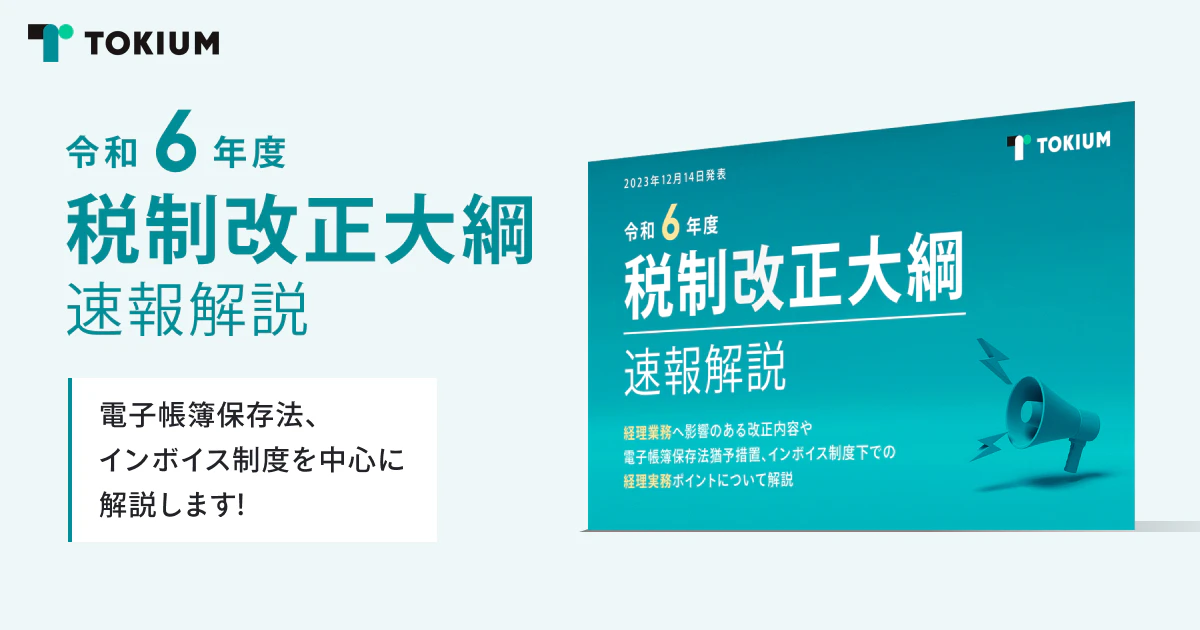 支出管理クラウド「TOKIUM」を提供する株式会社TOKIUM(本社:東京都千代田区、代表取締役:黒﨑 賢一、以下「TOKIUM」)は、2023年12月14日、政府与党より発表された「令和6年度 税制改正大綱」をもとに、インボイス制度の見直しについてや企業の支出管理業務へ影響のある改正内容に焦点を当てたホワイトペーパーを公開いたしました。また「令和6年度 税制改正大綱」の重要ポイントについて解説するオンラインセミナーを2023年12月18日および21日、26日に開催することをお知らせします。