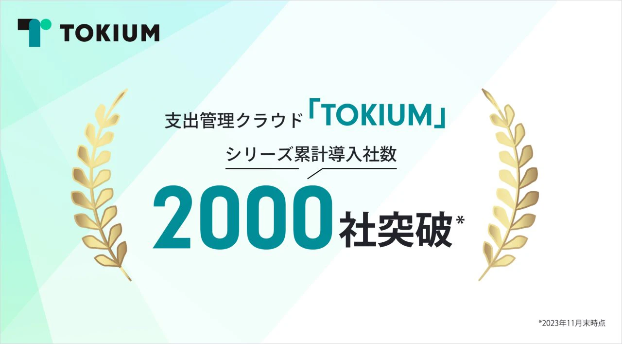 未来へつながる時を生む株式会社TOKIUM(本社:東京都中央区、代表取締役:黒﨑 賢一、以下「TOKIUM」)が提供する支出管理クラウド「TOKIUM」の導入社数が2000社を突破したことをお知らせします。今後も支出管理クラウドTOKIUMは、無駄な時間を減らして企業がコア業務に集中するためのサービスを提供し、「未来へつながる時を生む」という志を実現してまいります。