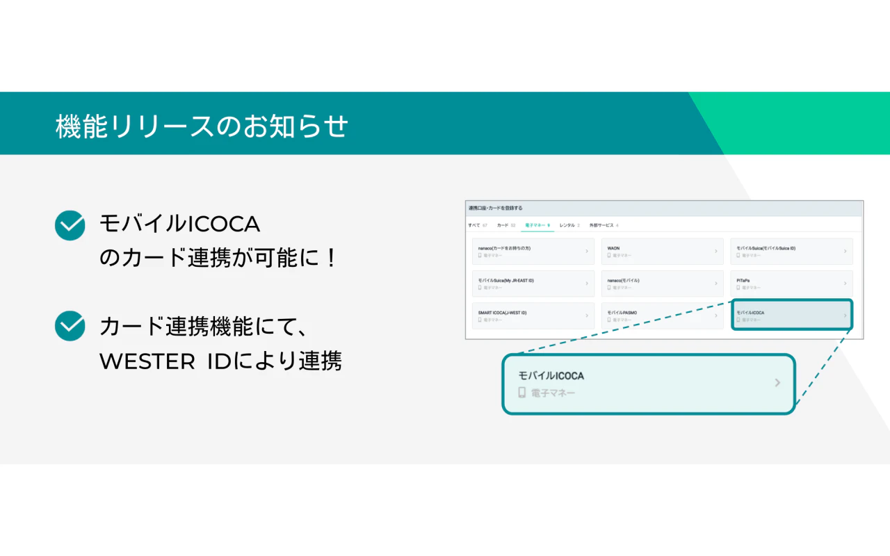 「モバイルICOCA」が新たにカード連携機能の対象に加わりました。