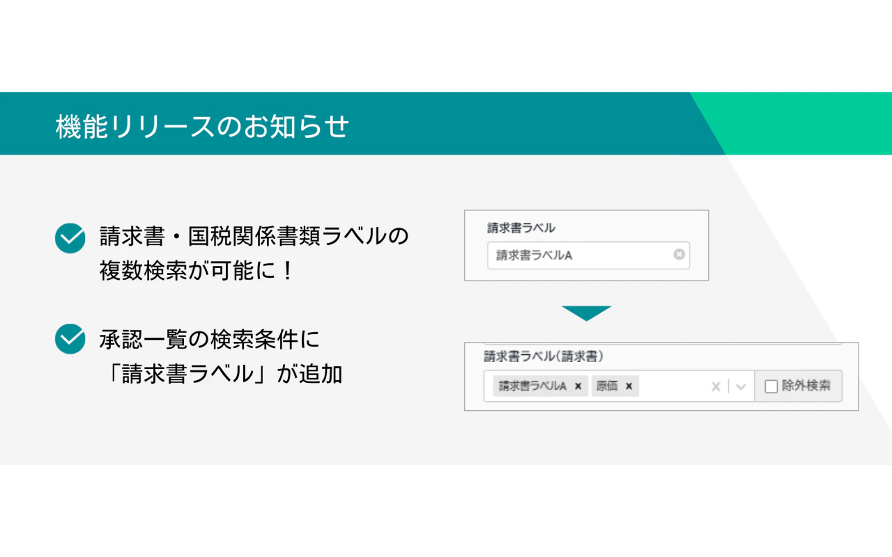 請求書ラベル、国税関係書類ラベルで複数検索・除外検索ができるようになりました。