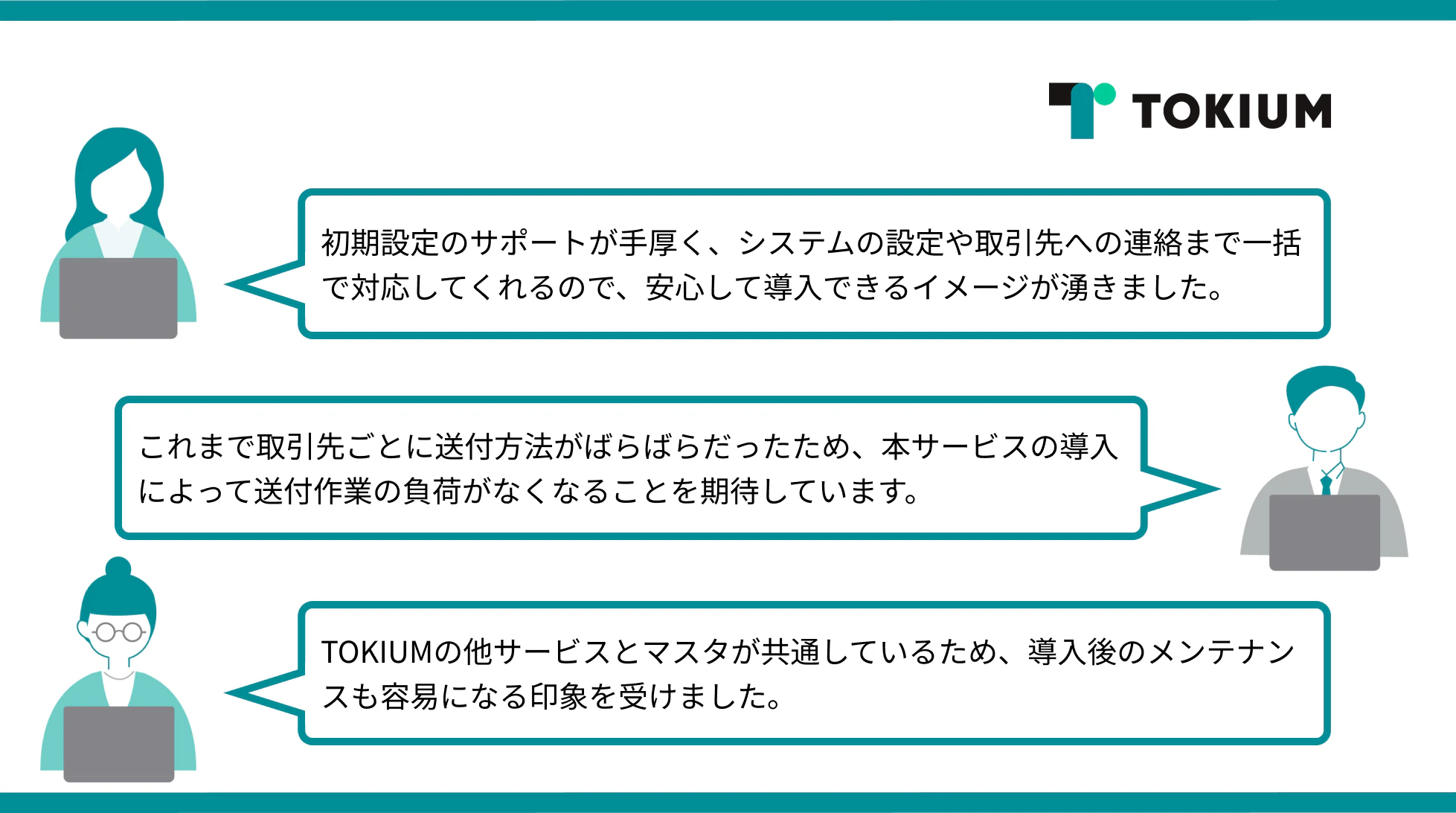 - 取引先への案内などをTOKIUMが代行し、スムーズな導入をサポート