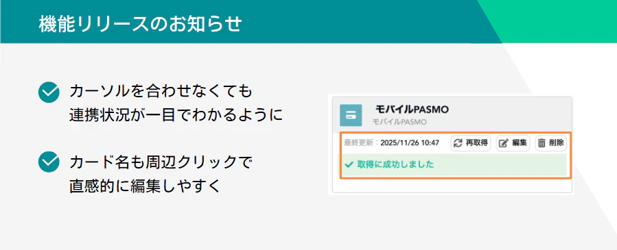 このたび、連携カード・サービス一覧のデザインを変更し、視認性と操作性を向上させました。