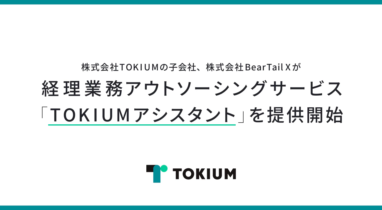 支出管理にまつわるクラウドサービスを提供する株式会社TOKIUM(本社:東京都中央区、代表取締役:黒﨑 賢一、以下「TOKIUM」)の子会社である、株式会社BearTail X(本社:東京都中央区、代表取締役:篠原 啓輔、以下「BearTail X」)は2024年8月より、支出管理プラットフォームTOKIUMを利用している企業を対象にした経理業務アウトソーシングサービス「TOKIUMアシスタント」の提供を開始しました。