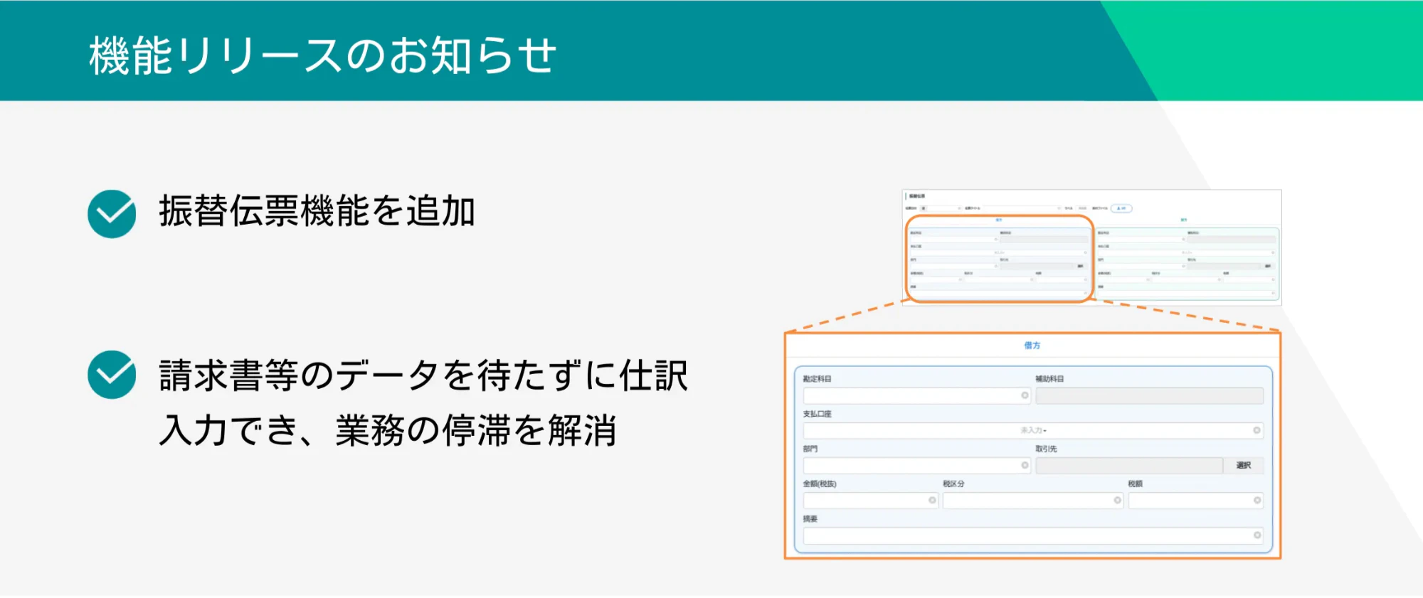 このたび、請求書等のデータがない状態でも独立して仕訳入力ができるようになりました。
