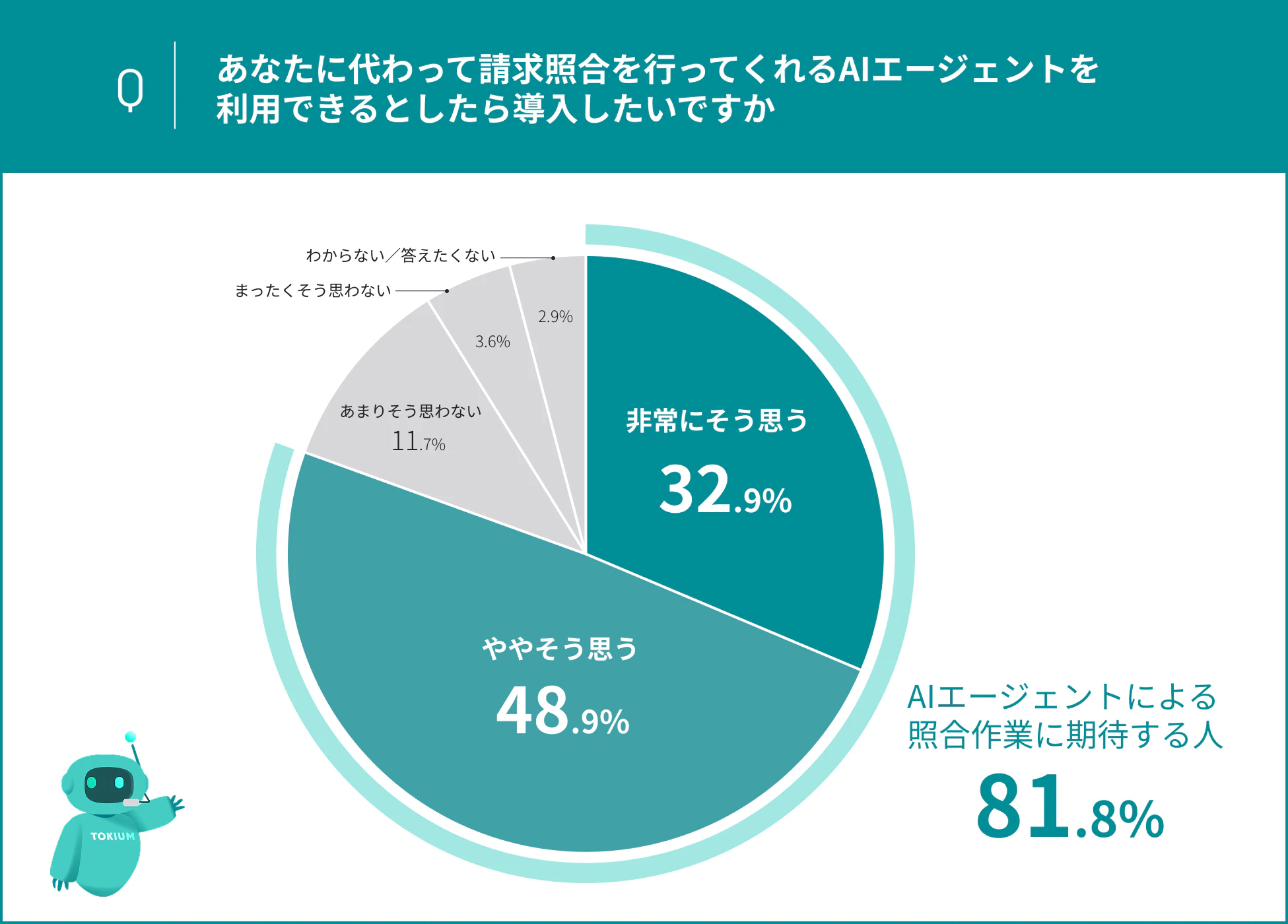 - 81.8%が、AIエージェントによる請求書の照合の代行に期待