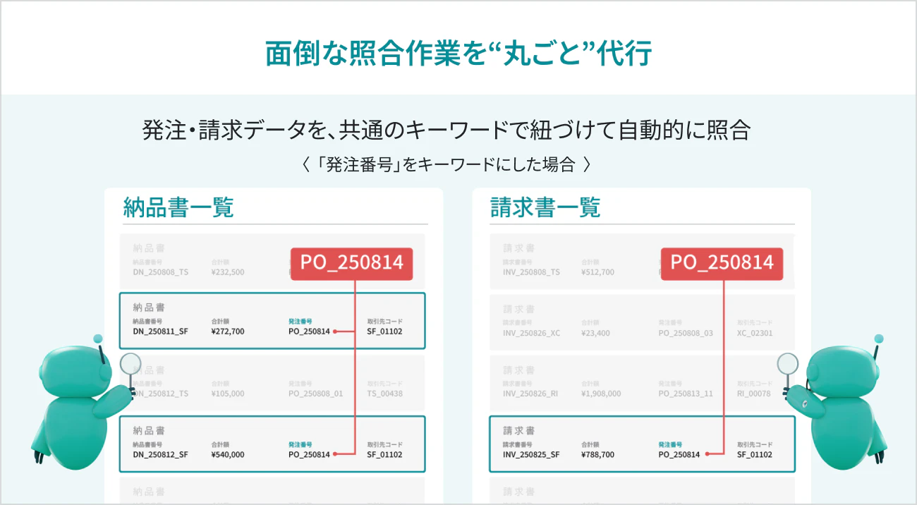 - 面倒な照合作業を“丸ごと”代行: