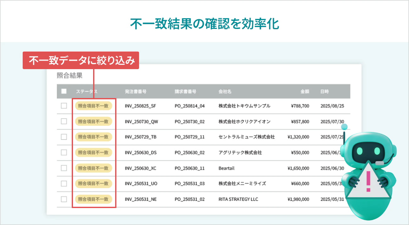 これにより、照合作業のためだけに明細データを作成する手間がなくなります。