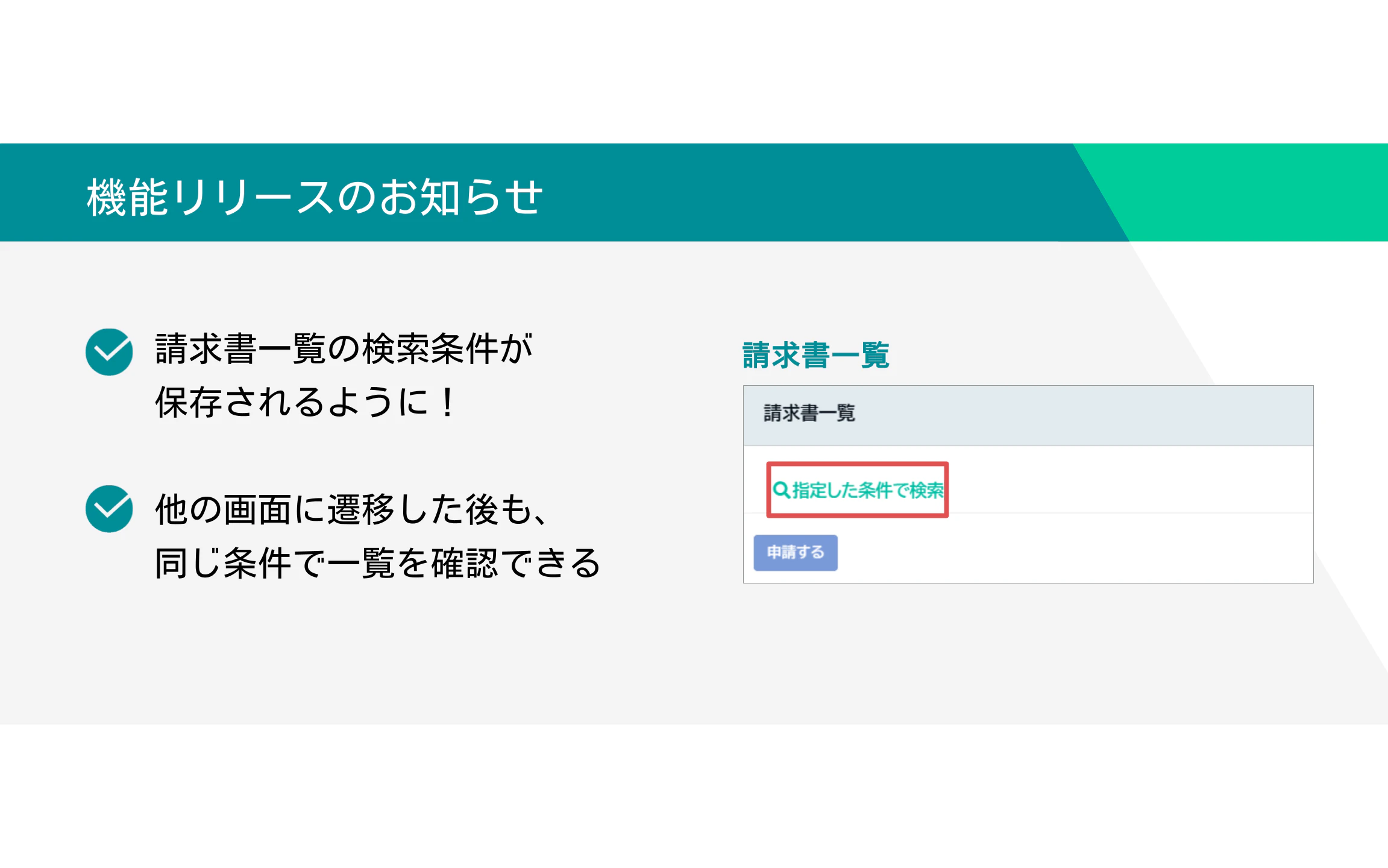 これにより、別の画面に遷移した後も同じ条件で絞り込んだ一覧を確認できます。