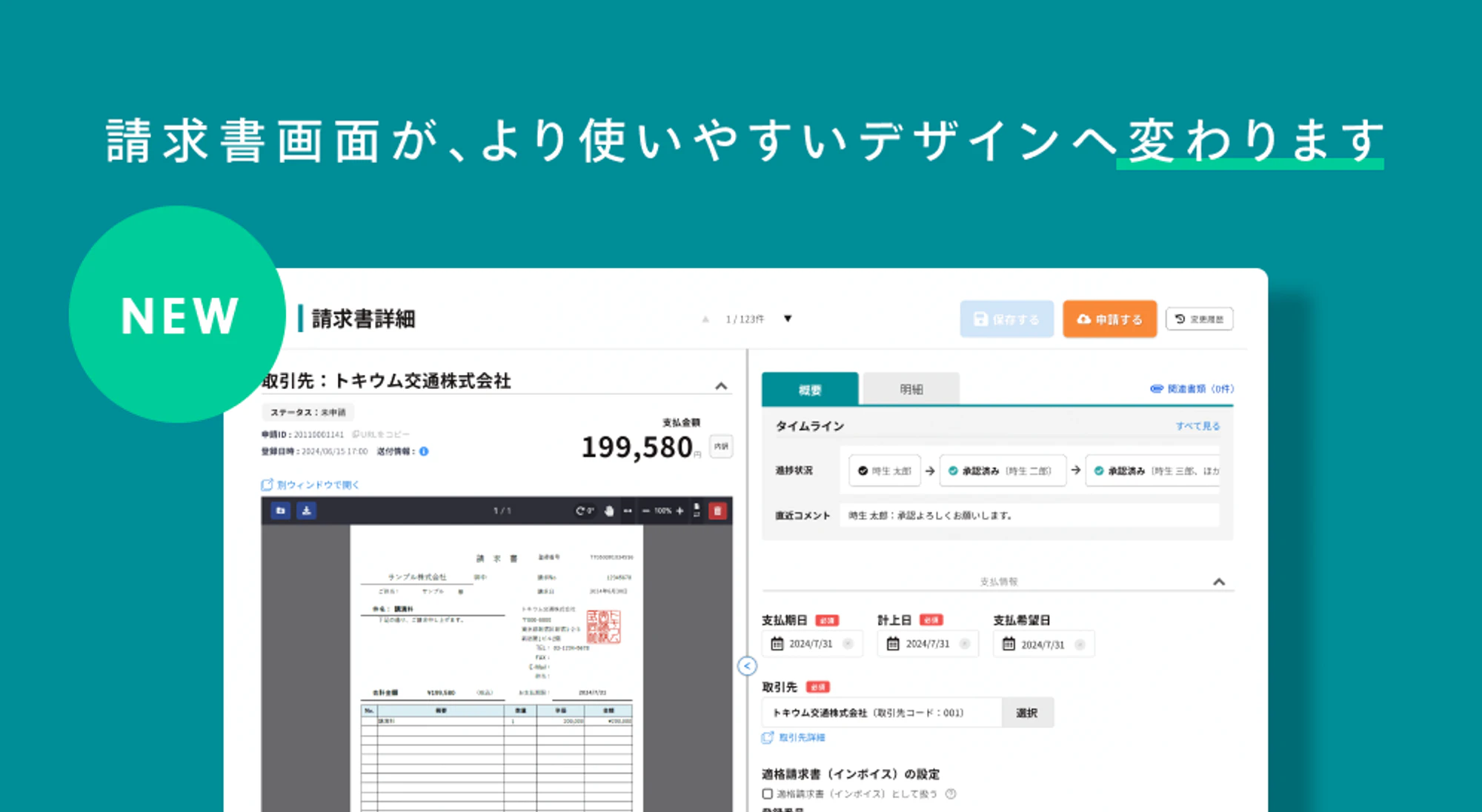 これまでより直感的・簡単に操作いただけるよう、請求書の詳細画面をリニューアルいたしました。