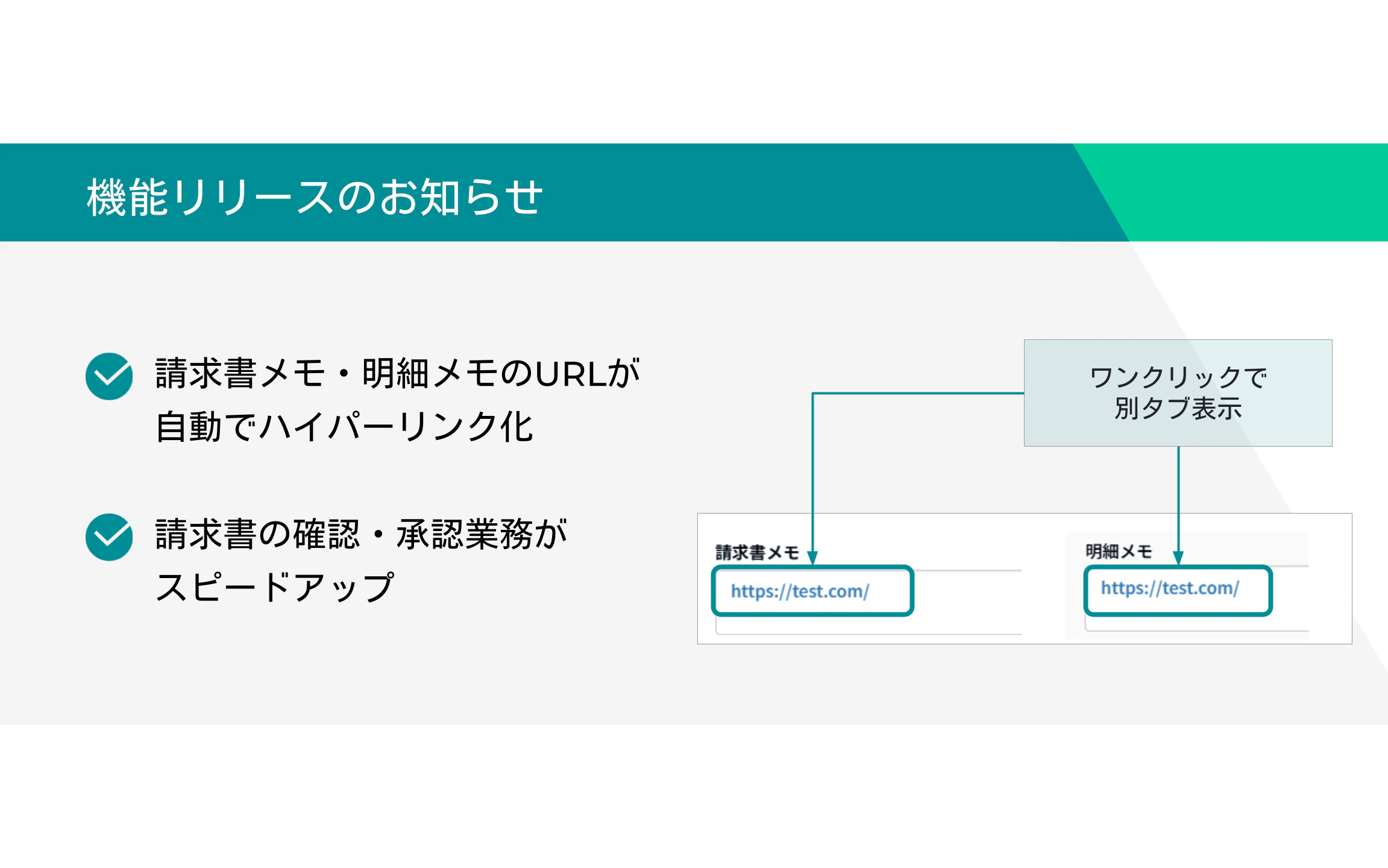 URLを確認する際の手間が削減され、請求内容の確認や承認業務がよりスムーズになりました。