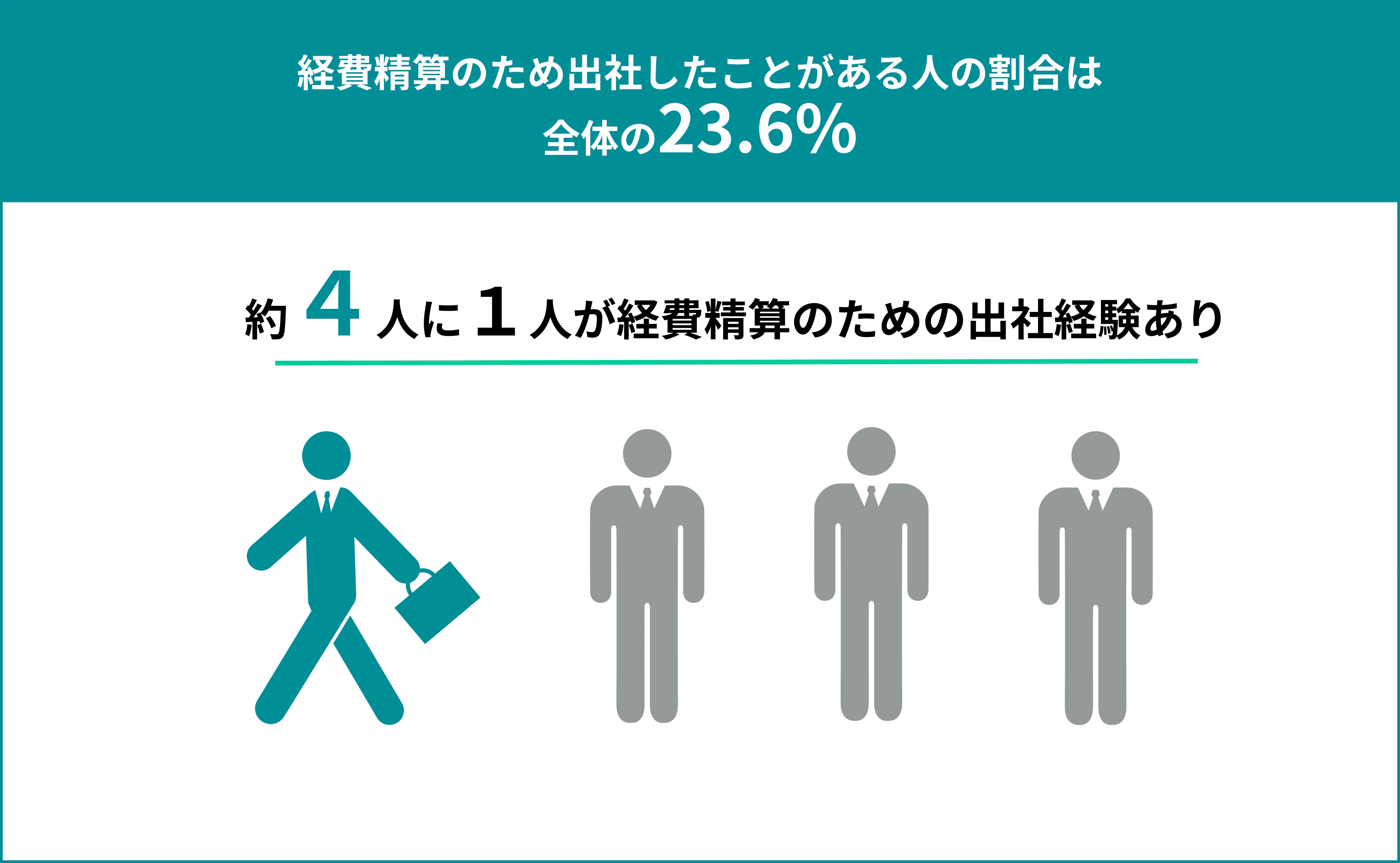 今回の調査で、全体の23.6%が経費精算の申請のために出社をする「経費精算出社」をした経験があると回答しました。