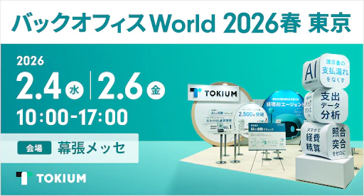 経理AIエージェントを提供する株式会社TOKIUM(本社:東京都中央区、代表取締役:黒﨑 賢一、以下「TOKIUM」)は、2026年2月4日から2月6日までの3日間、幕張メッセで開催される「バックオフィスworld東京」に出展いたします。