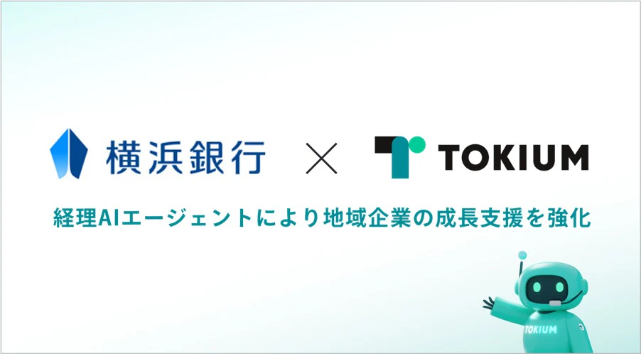 経理AIエージェントを提供する株式会社TOKIUM(本社:東京都中央区、代表取締役:黒﨑 賢一、以下「TOKIUM」)は、株式会社横浜銀行(代表取締役頭取:片岡 達也/以下、「横浜 銀行」)が TOKIUM AIエージェントの取り扱いを開始したことをお知らせします。