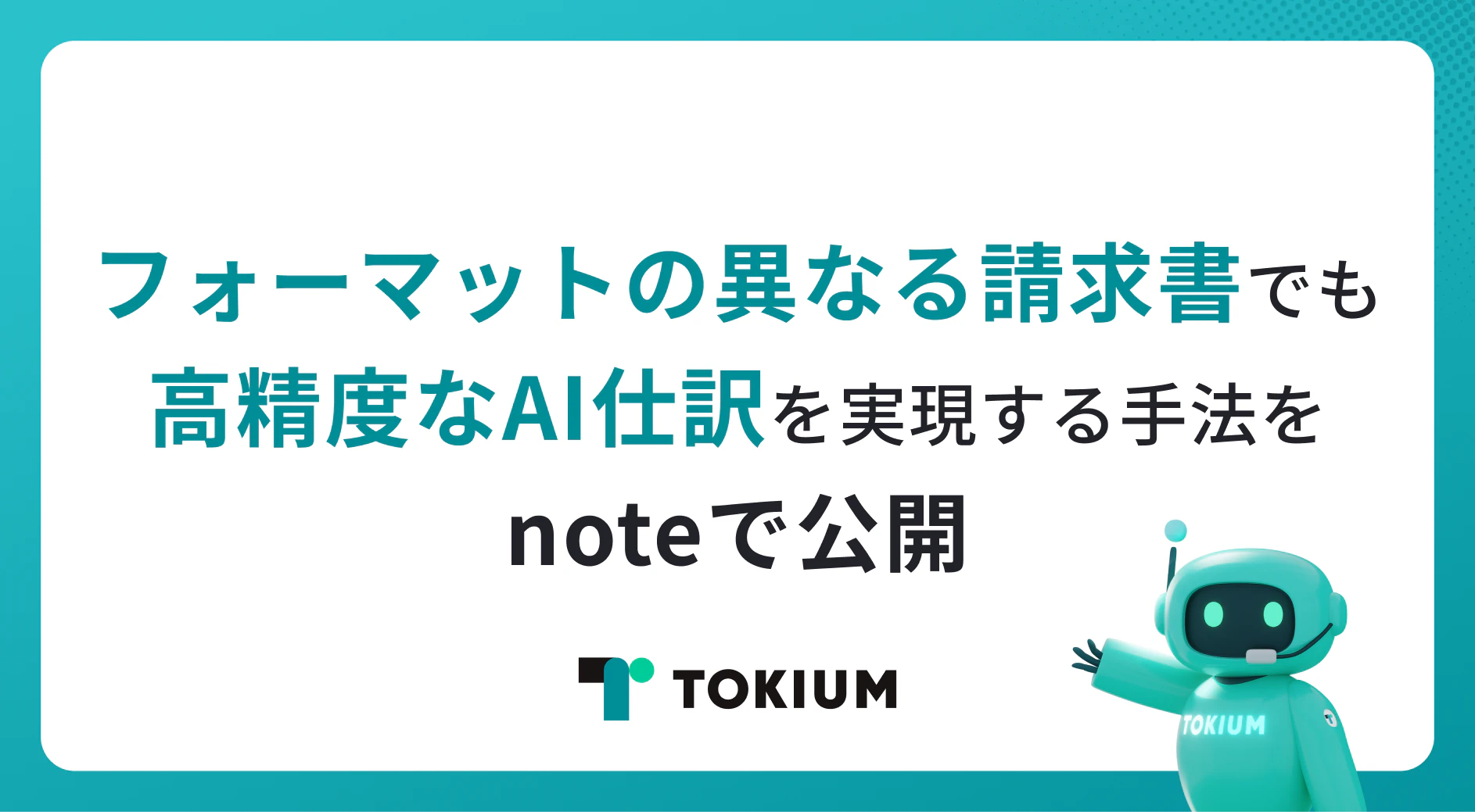 経理AIエージェントを提供する株式会社TOKIUM(本社:東京都中央区、代表取締役:黒﨑 賢一、以下「TOKIUM」)は、TOKIUM AI明細入力プロダクトマーケティングマネージャーの北島による、仕訳入力に関するnoteを公開したことをお知らせします。