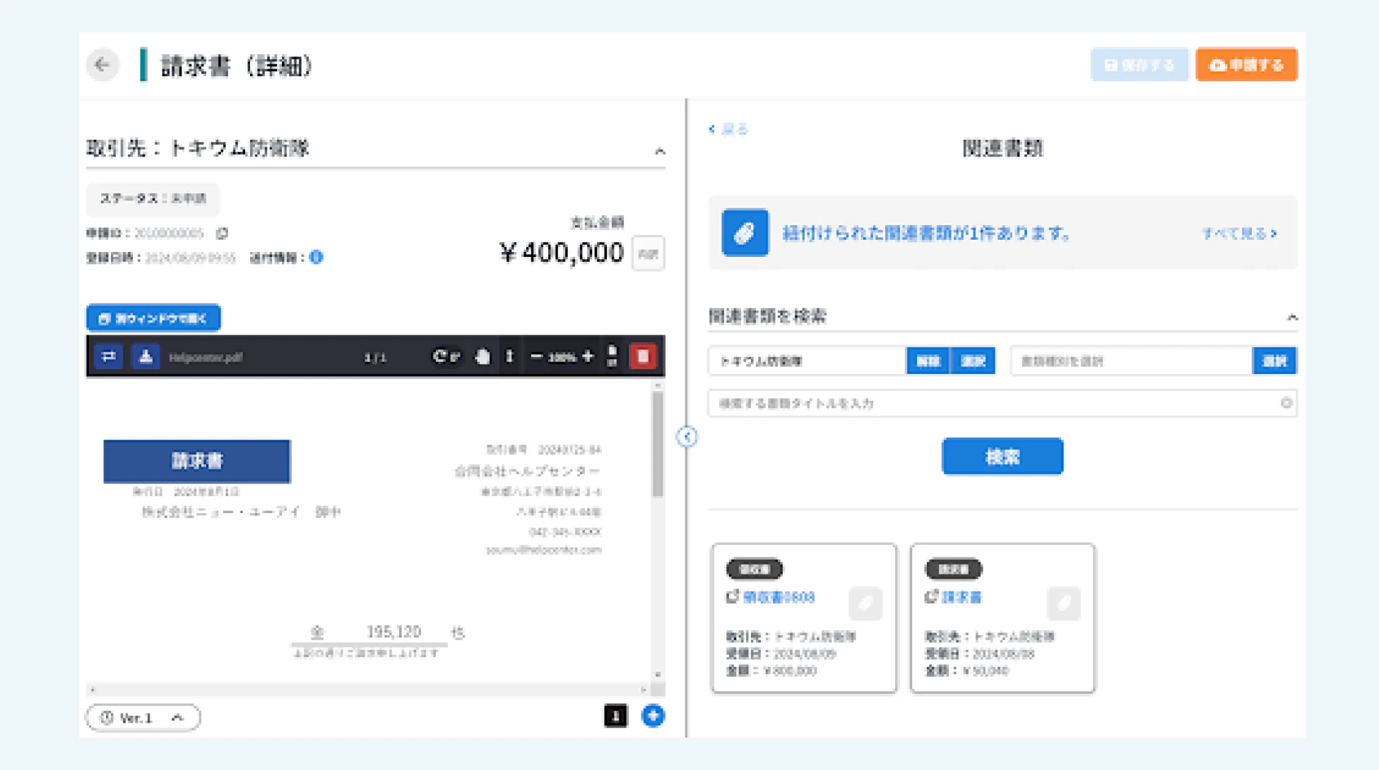 請求書に関連する注文書や納品書などの国税関係書類の表示領域を拡大し、複数の書類を一覧で閲覧できるようにしました。これにより、必要な書類にスムーズにアクセスすることができるようになりました。