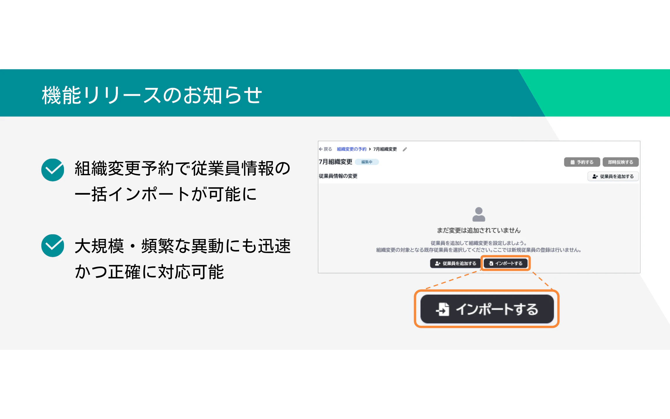 今回のアップデートにより、複数人の従業員情報を一括でインポートし、変更を予約できるようになりました。