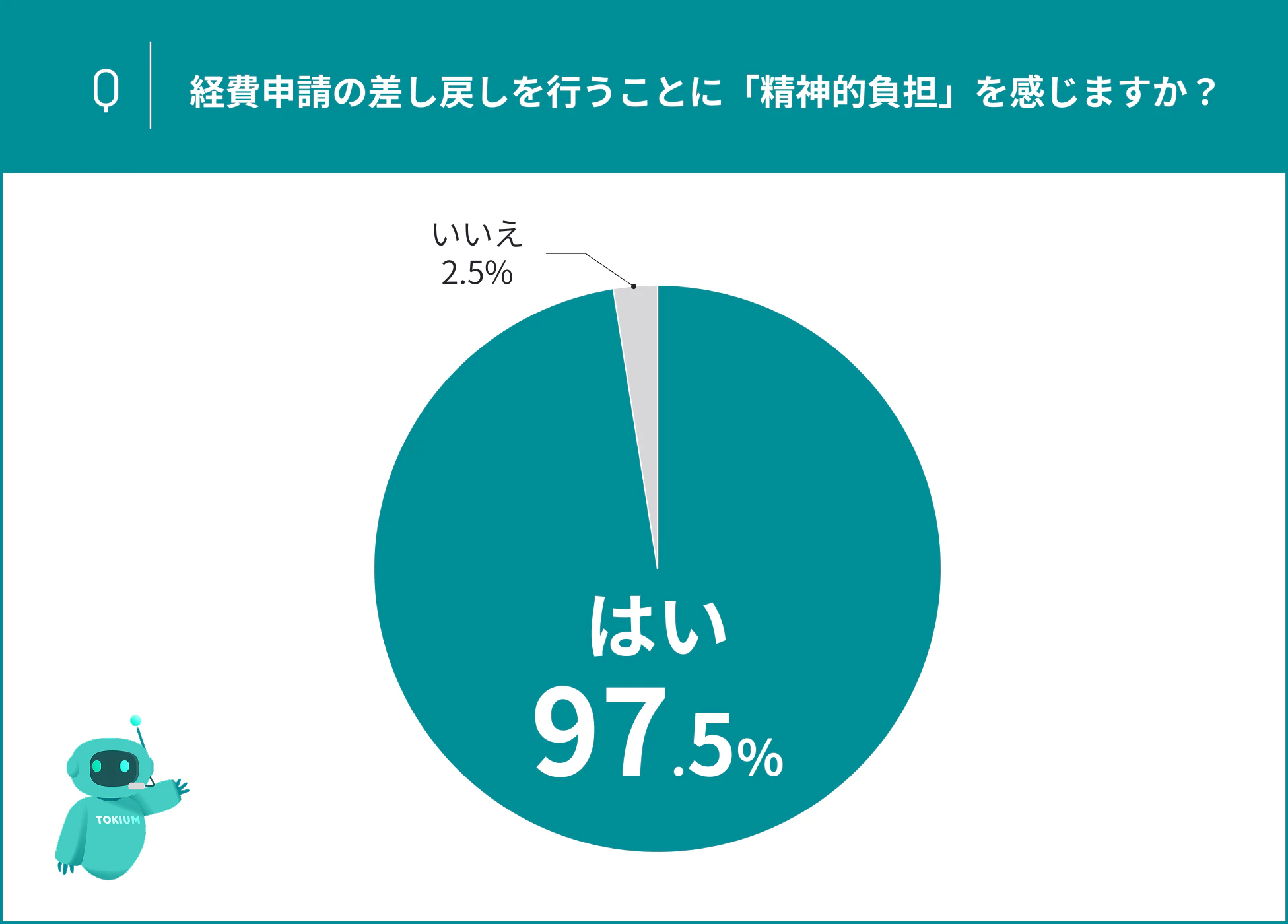 今回の調査で、承認担当者の73.9%が立替経費の承認作業を負担に感じており、その最大の要因が差し戻し業務にあることが明らかになりました。さらに、97.5%もの担当者が差し戻し業務に精神的負担を感じている実態も判明しました。